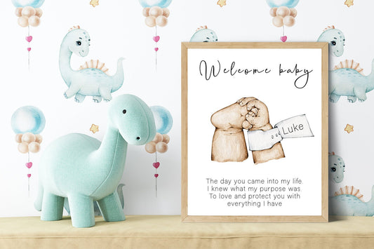 New born baby foot with personalised tag portrait | Welcome new baby print in natural skin tones or Black and white | A3 | A4 | A5 |