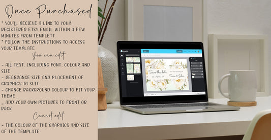 Wild Bloom Wedding sign template bundle - 7x Editable Templates - Table numbers, place cards, Favour tags and drinks menu