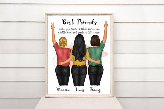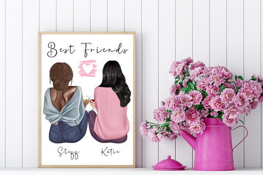 Personalised Girl Best Friend Print | Customisable Bestie Portrait | Gift for girl friend | Digital & Print Sizes Available