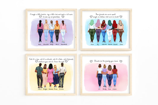 Personalised best friend portrait, wall art gift for besties | A4 | A5 | Greeting card