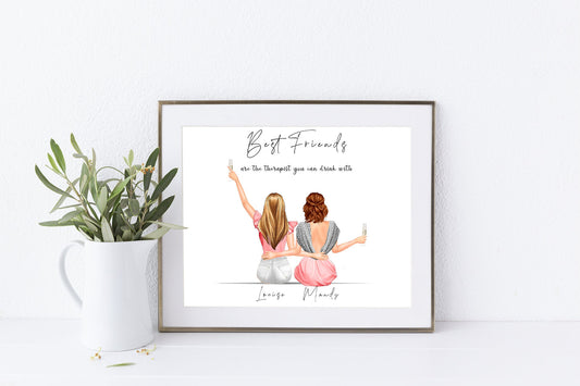 Personalised present for best friend, artwork gift of besties with celebration drinks | A4 | A5 | Greeting card