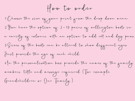 Personalised grandma wellies print | custom grandparent wellington boots wall art with cat and dog paws | A5 | A4 | A3