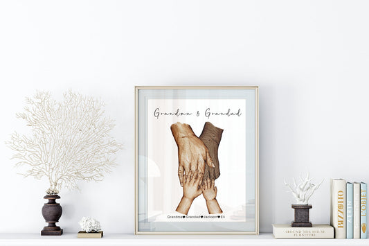 Grandparent hands portrait | New grandchild gift | Black and white or full colour | A3| A4 | A5 |