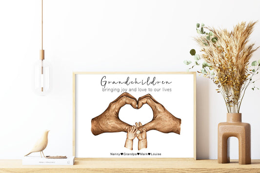 Grandma hands in shape of a heart with grandchildren print | Black and white or full colour | A3 | A4 | A5 |