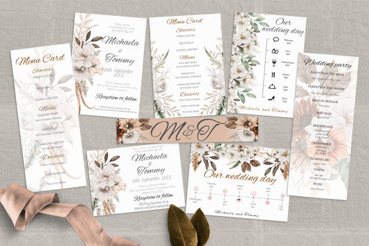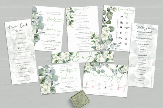 Eucalyptus and white flower large wedding template bundle - 15x Editable Template in beautiful natural tones - Full wedding suite