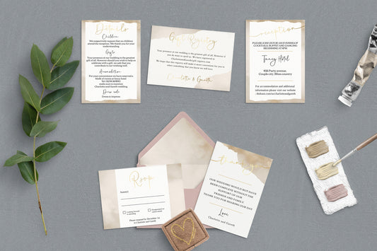 Large Golden Shimmer Wedding Invitation Bundle - 15x Editable Template in Glistening gold style - Full wedding suite