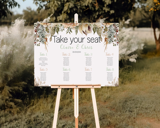 Autumn Floral Wedding Sign Template: Editable Seating Charts (Digital Download)