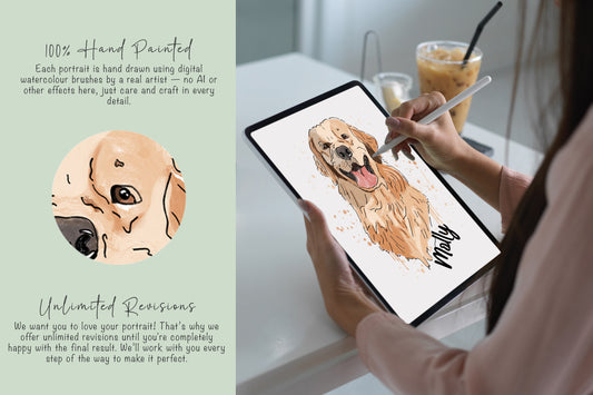 Custom Hand-Drawn Pet Portrait, painted in watercolour style, ideal gift for animal lovers, cat or dog memorial in digital | A5 | A4 | A3