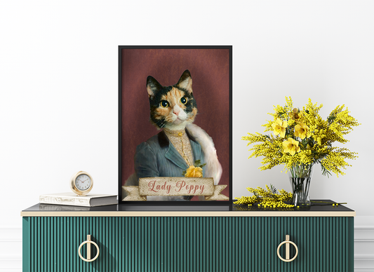 Custom Vintage Pet Portrait – Personalised Pet Art as a Queen, Princess, Historical ladies – Pet Gift for Dog and Cat Lovers | A5 | A4 | A3