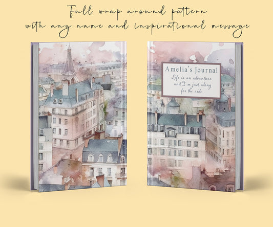Parisian journal with breath taking Paris skyline pattern, personalised with name and custom message | A4 | A5 | 5x7