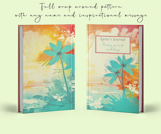 Customised notebook journal with colourful, bright and summery floral patterns in yellow, pink and blue | A4 | A5 | 5x7