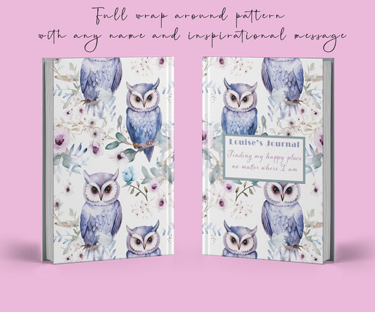Personalised owl journal - with beautiful watercolour birds surrounded by colourful flowers | A4 | A5 | 5x7