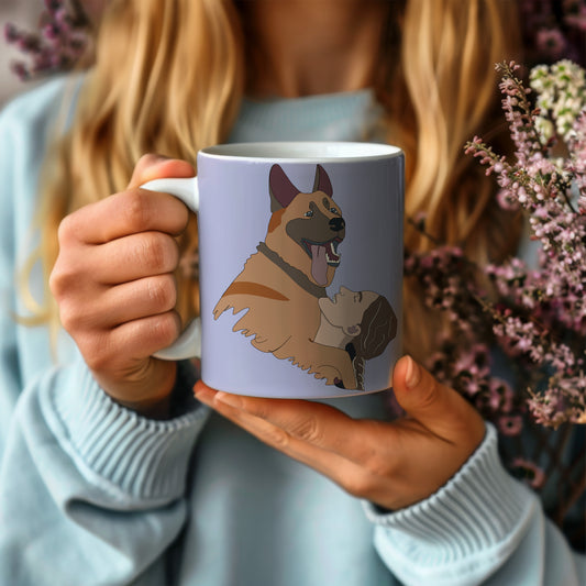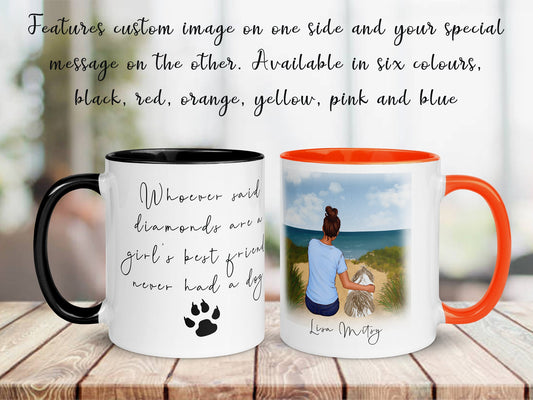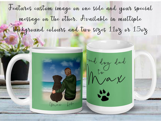 Personalised glossy mug | dog with owner design | two sizes 11oz, 15oz | colourful backgrounds