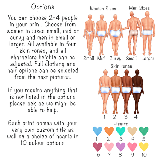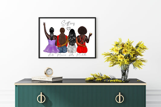 Personalised Sisters portrait, custom print of 2-4 siblings in a range of sizes and plenty of options to choose | A4 | A5 | Greeting card