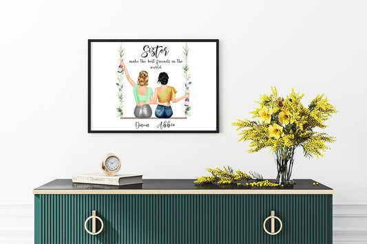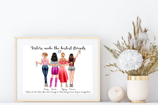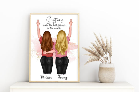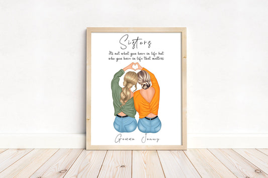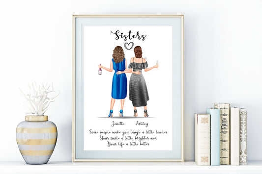 Personalised sister's print, wall art gift of siblings or female family member | A4 | A5 | Greeting card