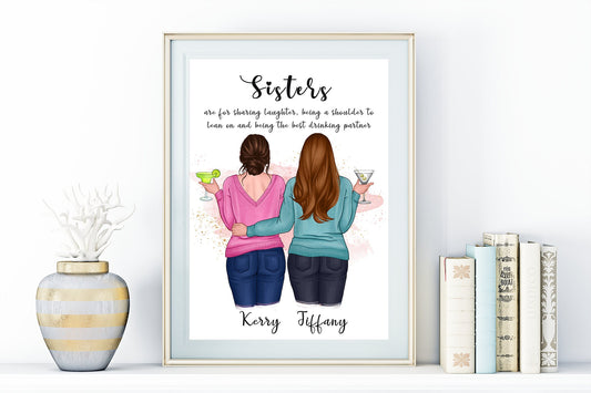 Personalised sister's print, wall art gift of siblings, with celebration cocktails | Perfect present for family | A4 | A5 | Greeting card