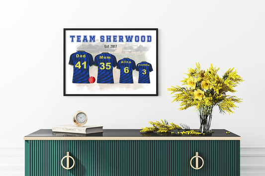Custom Family Cricket Shirts | County & International Team Art | Ideal Father's Day or Birthday Gift