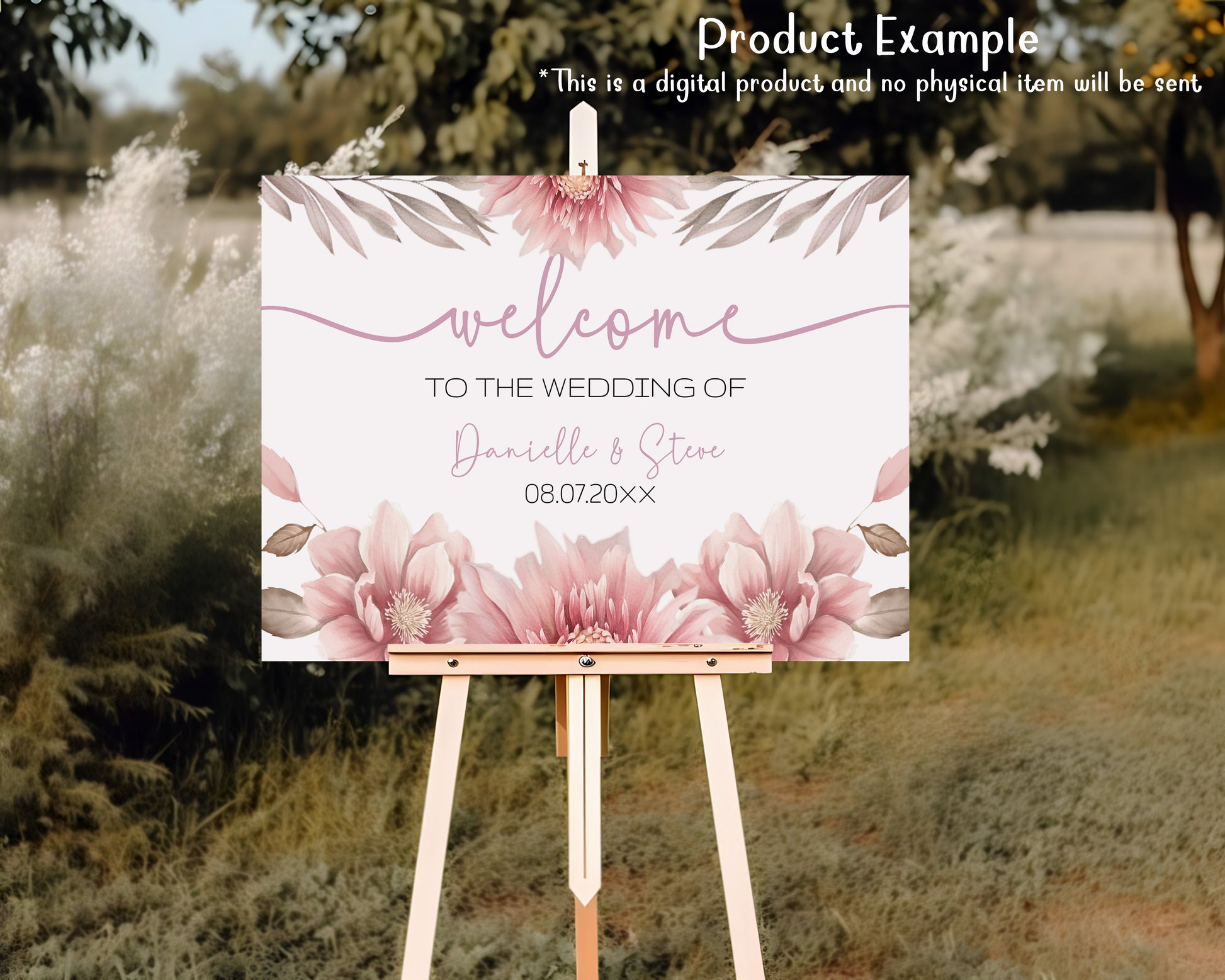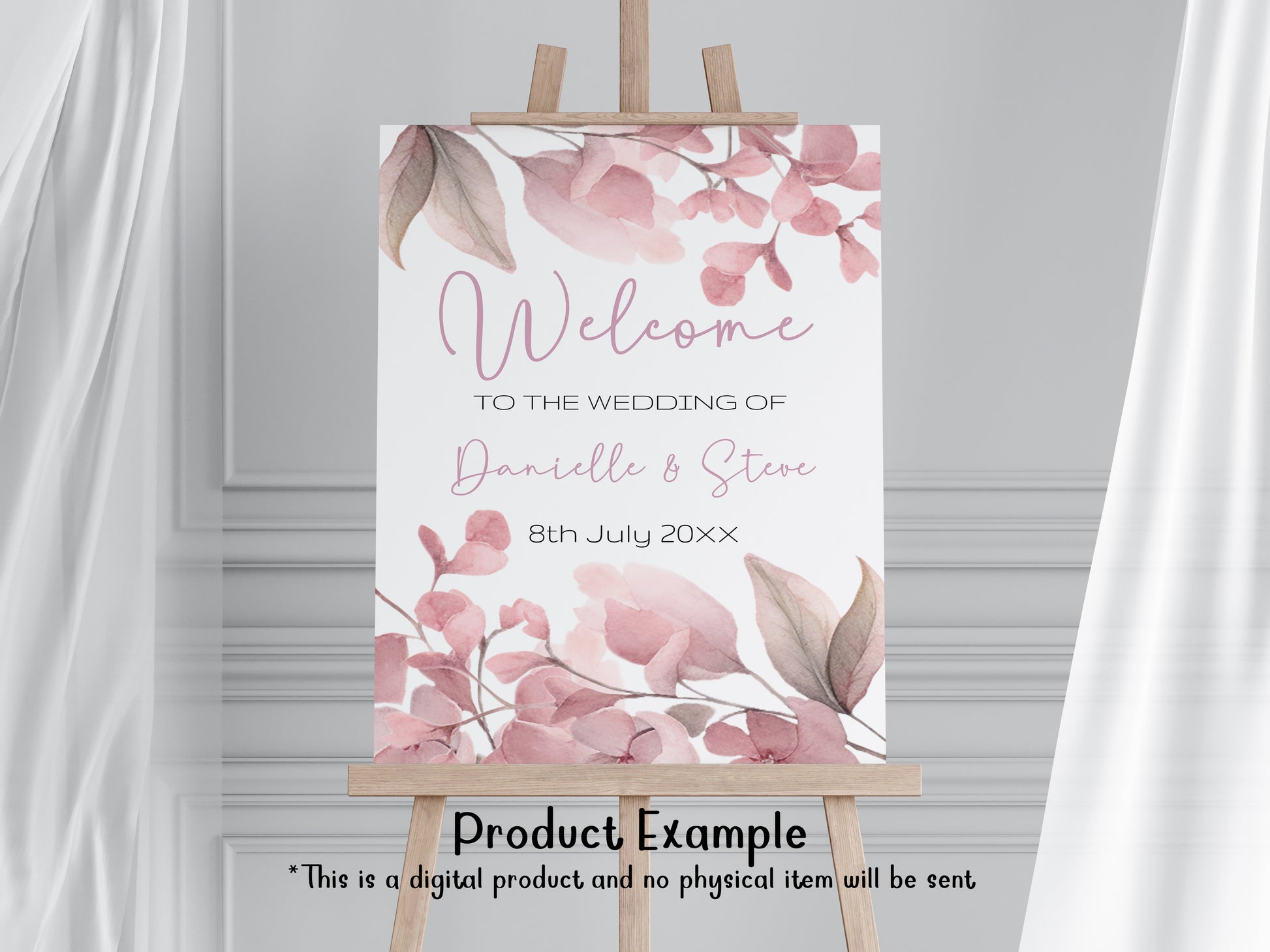Blush Pink Floral Wedding Sign Template Bundle (Editable)
