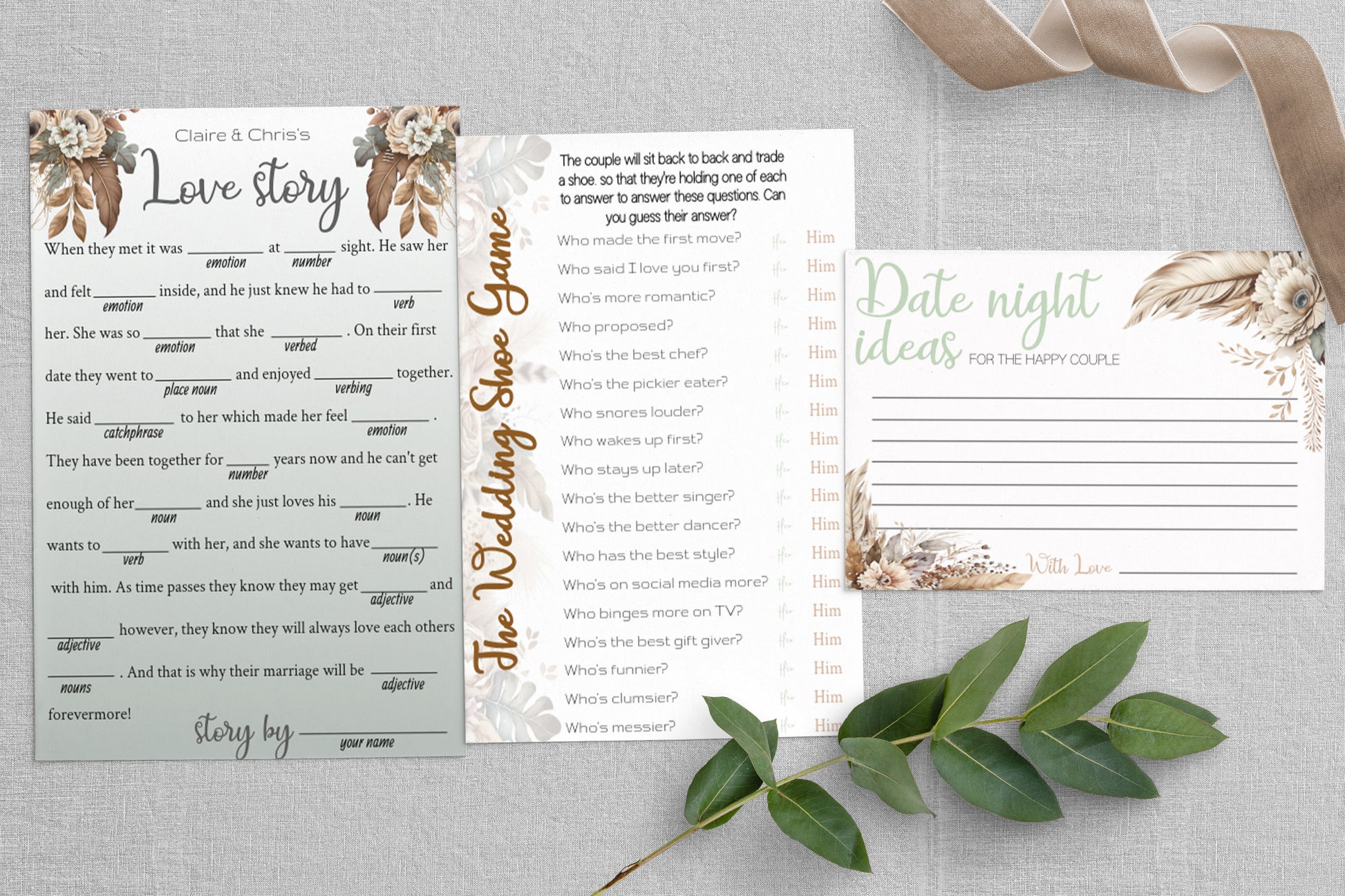 Boho Wedding Game Bundle: Rustic Floral Bridal Shower Games (Instant Download)