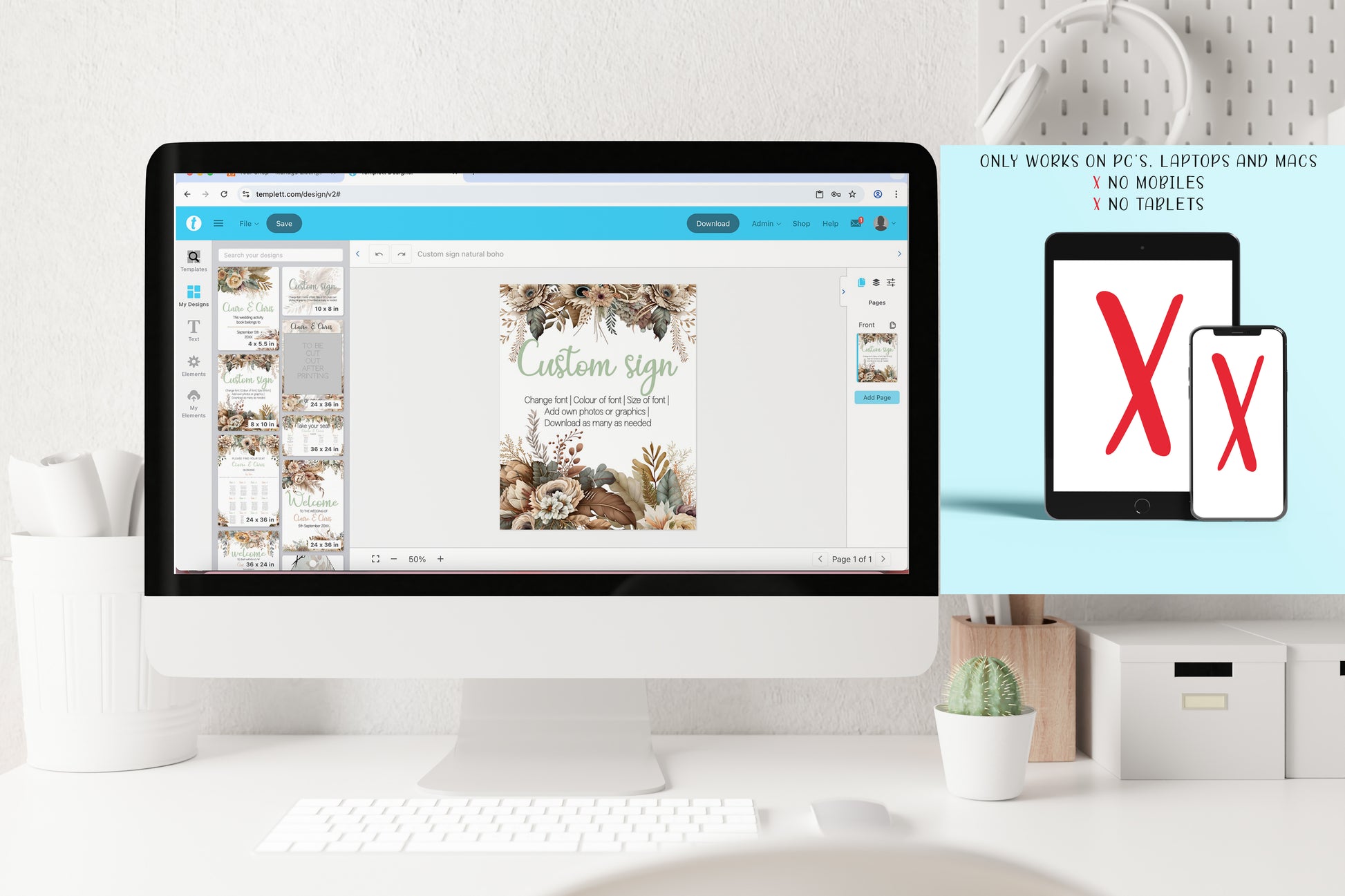 Templett is user-friendly popular editing software. No graphic design skills are required. Simply personalise the text, fonts, and colours to match your wedding theme and style. You can add your own photos front and back.