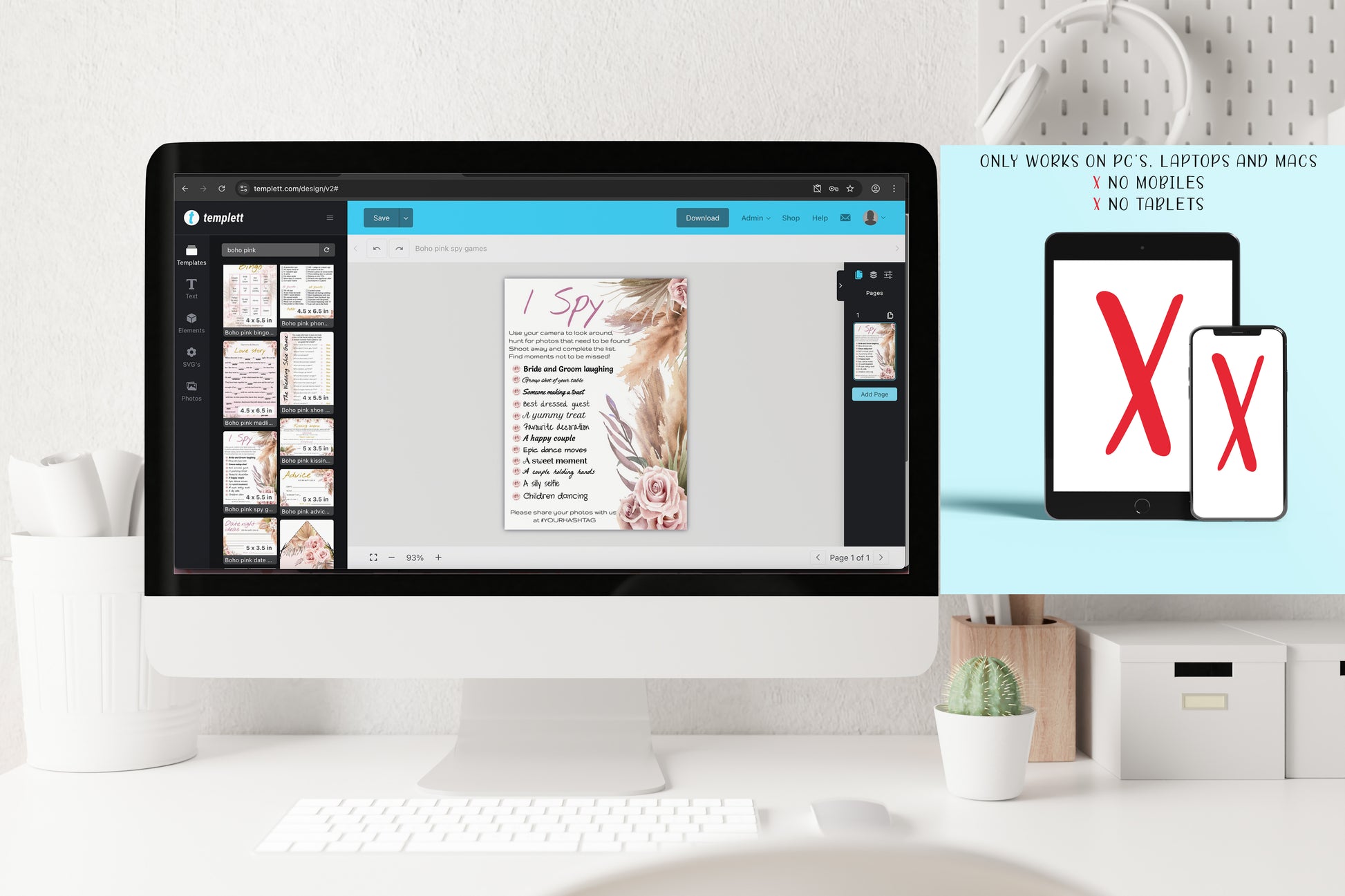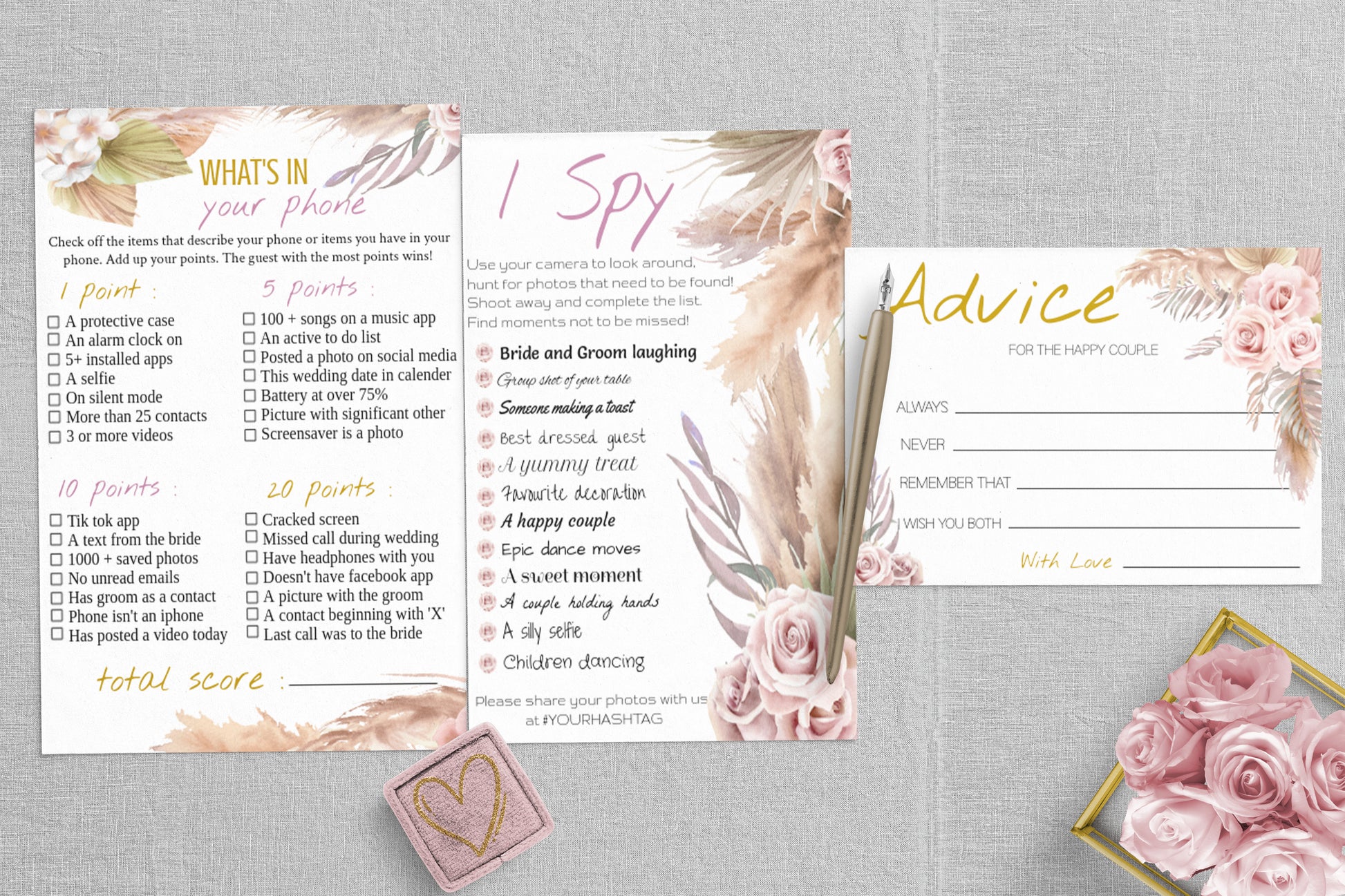 Pink Rose Boho Wedding Game Bundle: Editable Templates (Instant Download)