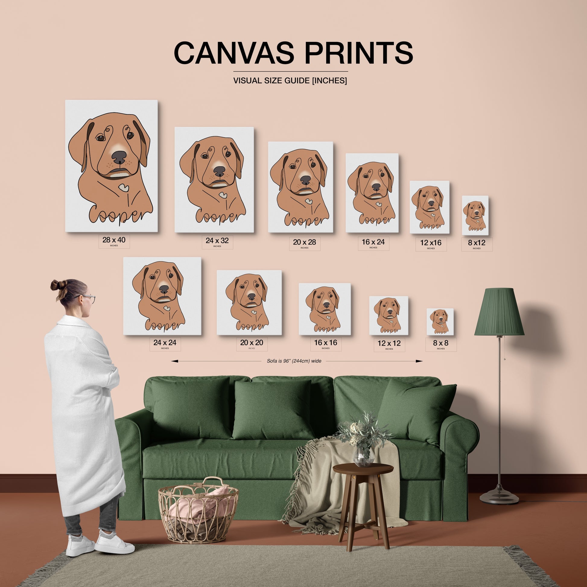 Custom Pet Portrait Canvas - Hand-Drawn Colour Line Art - Personalised Gift for Pet Lovers