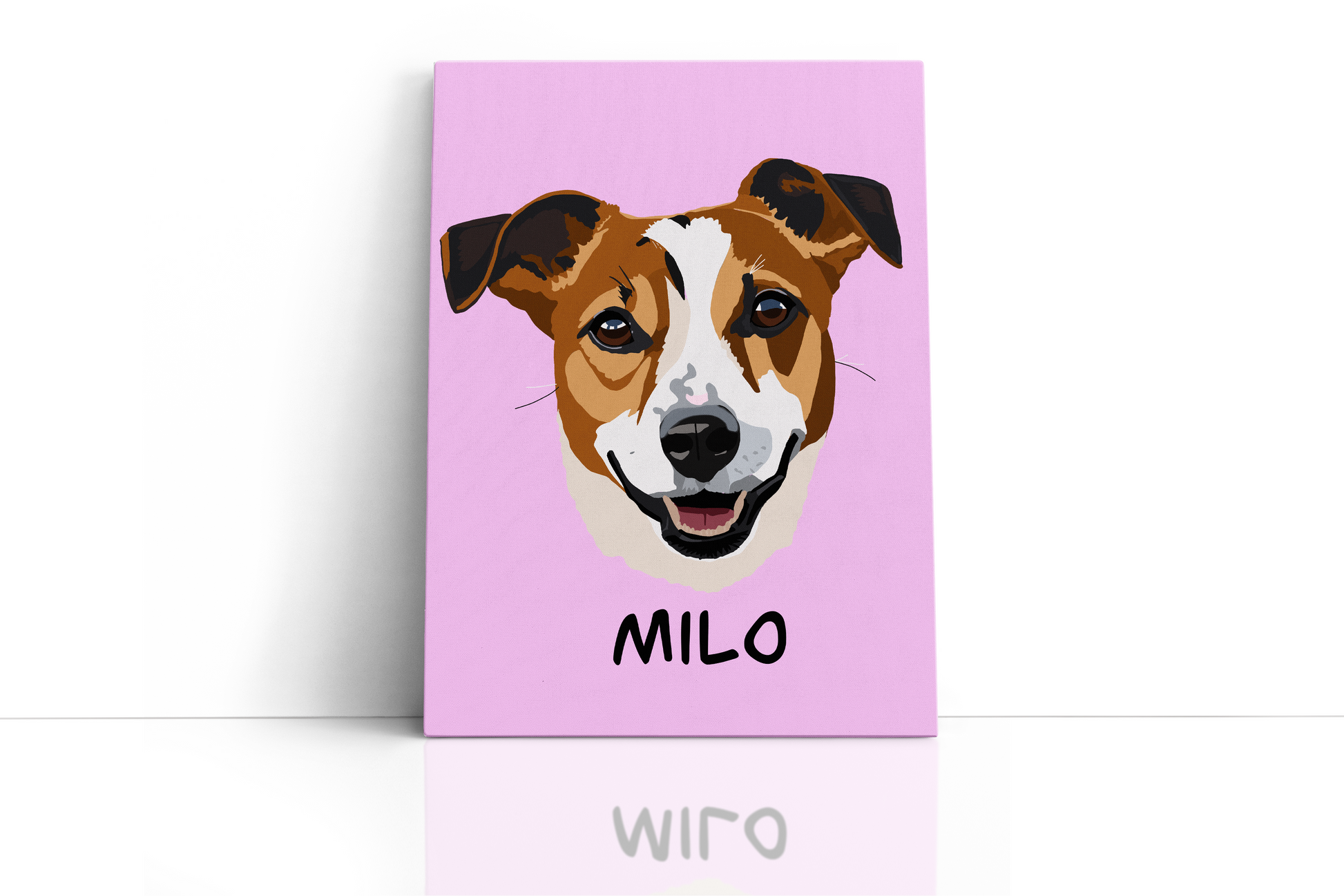 Custom Pet Portrait Canvas – Hand-Drawn Cartoon Pet Art