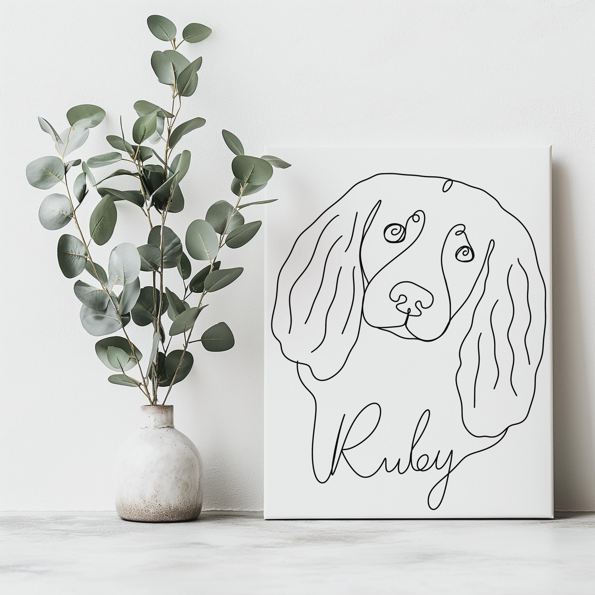 Custom Pet Portrait Canvas – Hand-Drawn Line Art