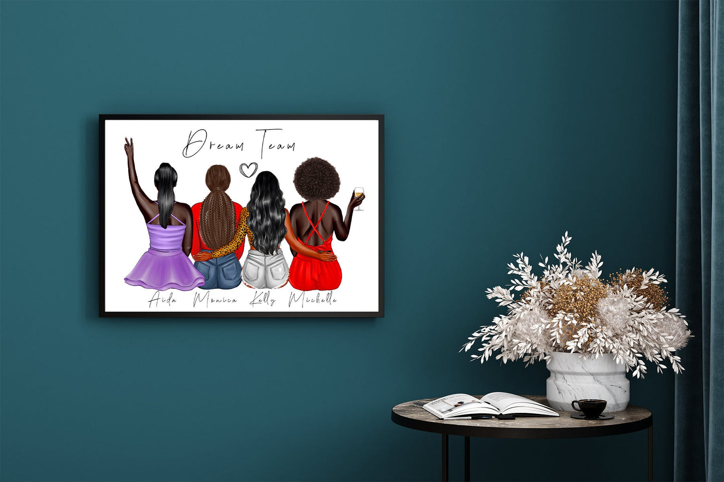 Colleague goodbye gift, portrait of 2-8 people of your work besties. This personalised co-worker print would make the perfect gift for a new job, colleague leaving gift, retirement or as a memento of a great team.