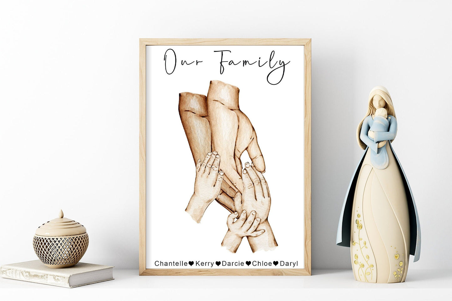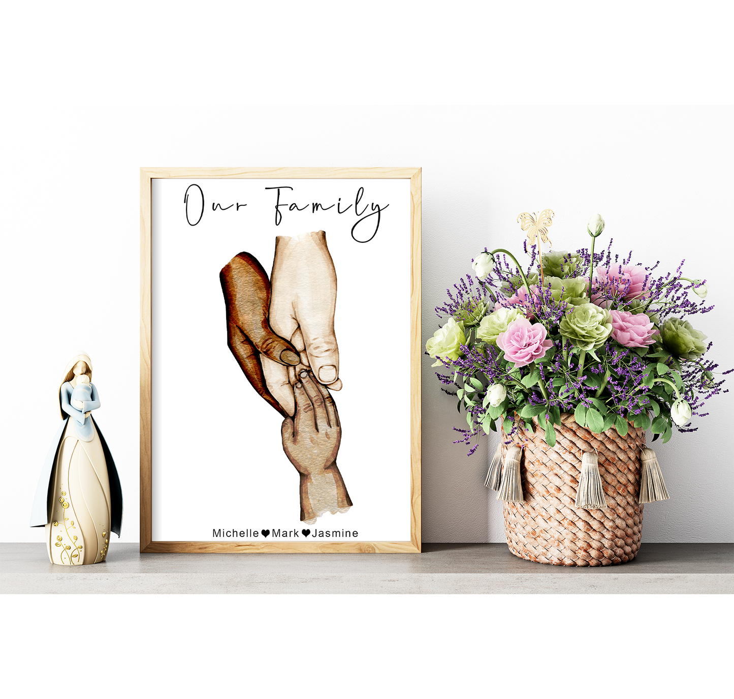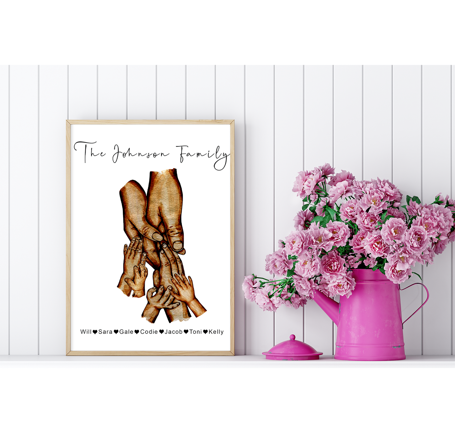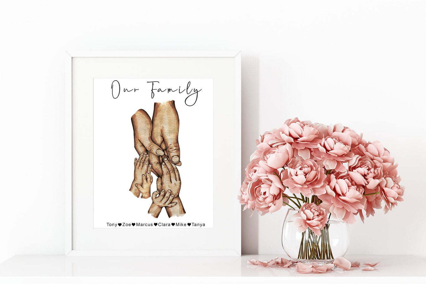 Family hands watercolour portrait | Natural skin tones or Black and white