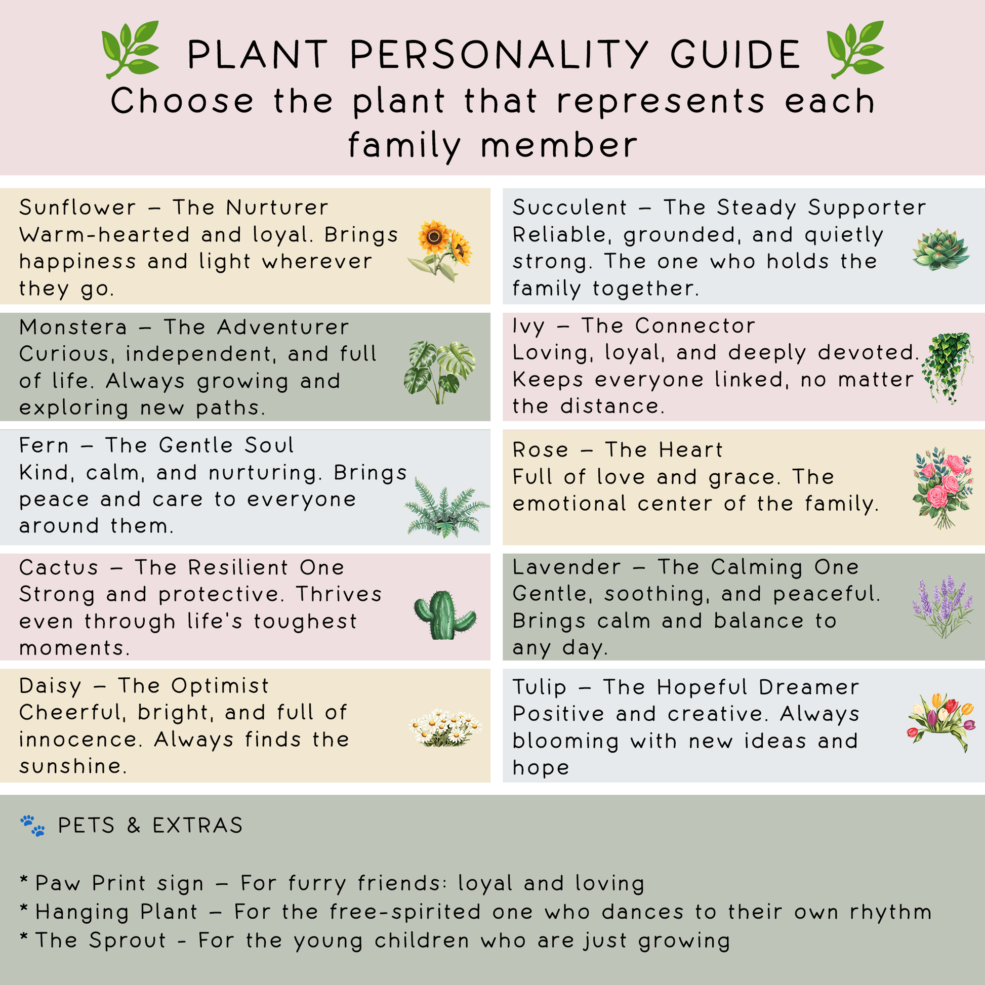 This charming House Plant Family print transforms your loved ones into a row of hand-drawn potted plants, each labeled with their name and full of personality.