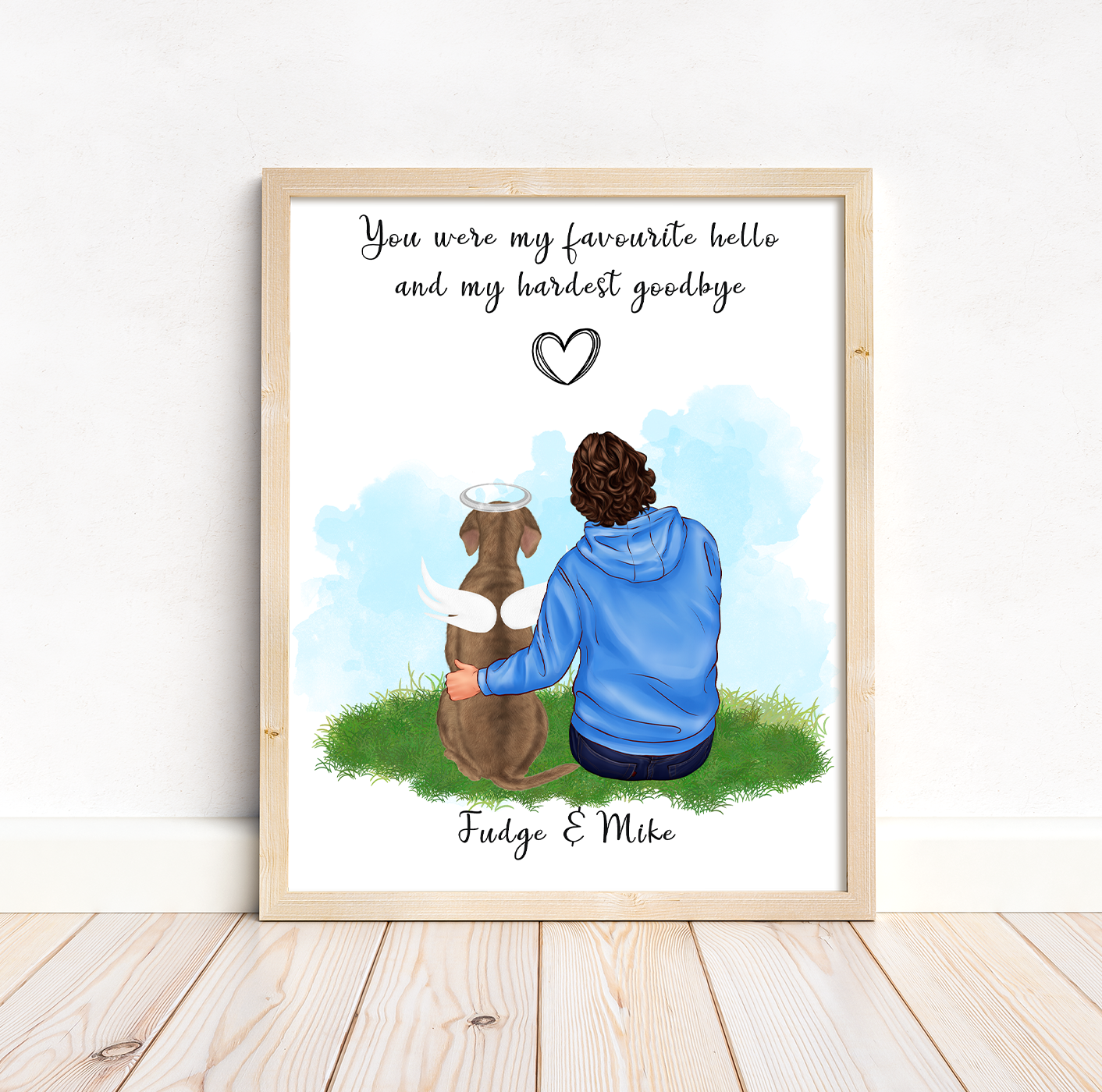 The perfect way to immortalise your faithful companion with this fully custom dog memorial picture. Would make a lovely thoughtful memento of you and your four-legged best friend or as a touching gift to someone suffering a doggie bereavement.