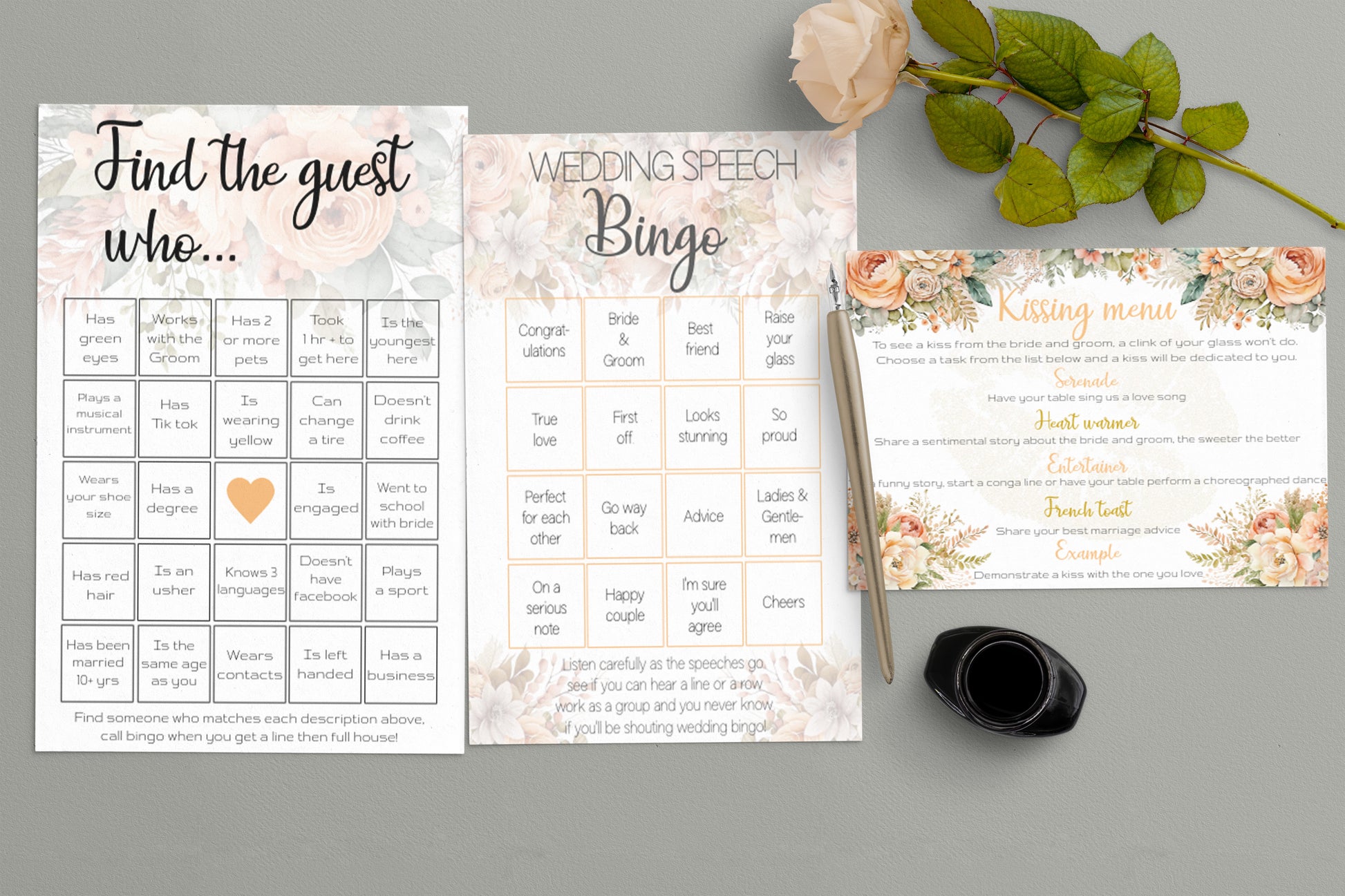 Peach Flowers Wedding Game Bundle: Editable Templates of Interactive guest games (Digital download)